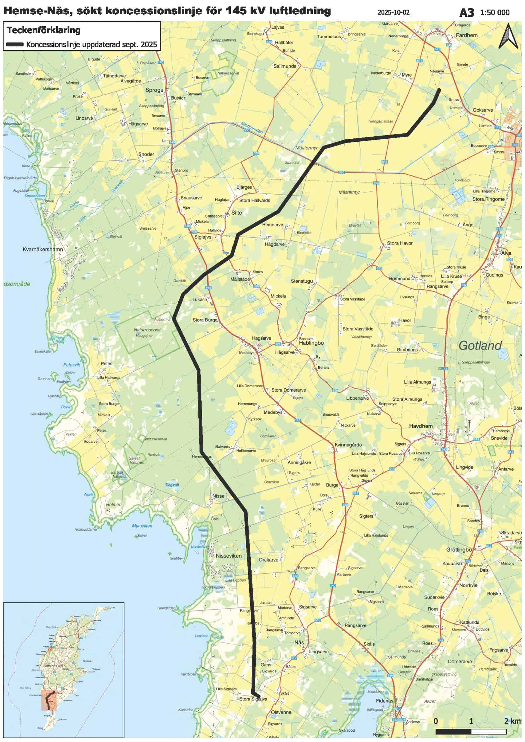 Ansökan om att koncession för linje (tillstånd) att bygga två nya 145 kV kraftledningar mellan Hemse och Näs lämnades in till Energimarknadsinspektionen (Ei) den 22 oktober .
